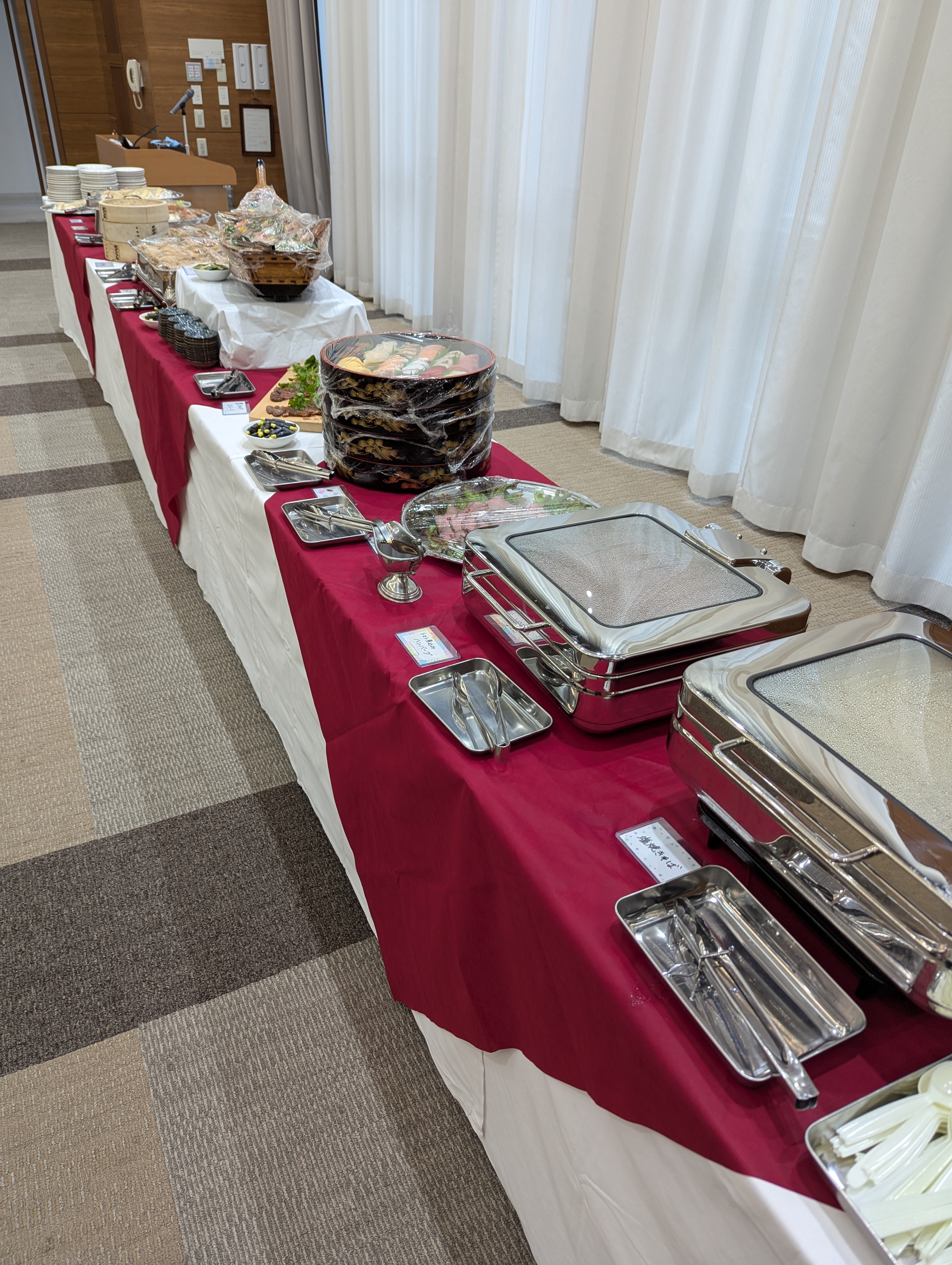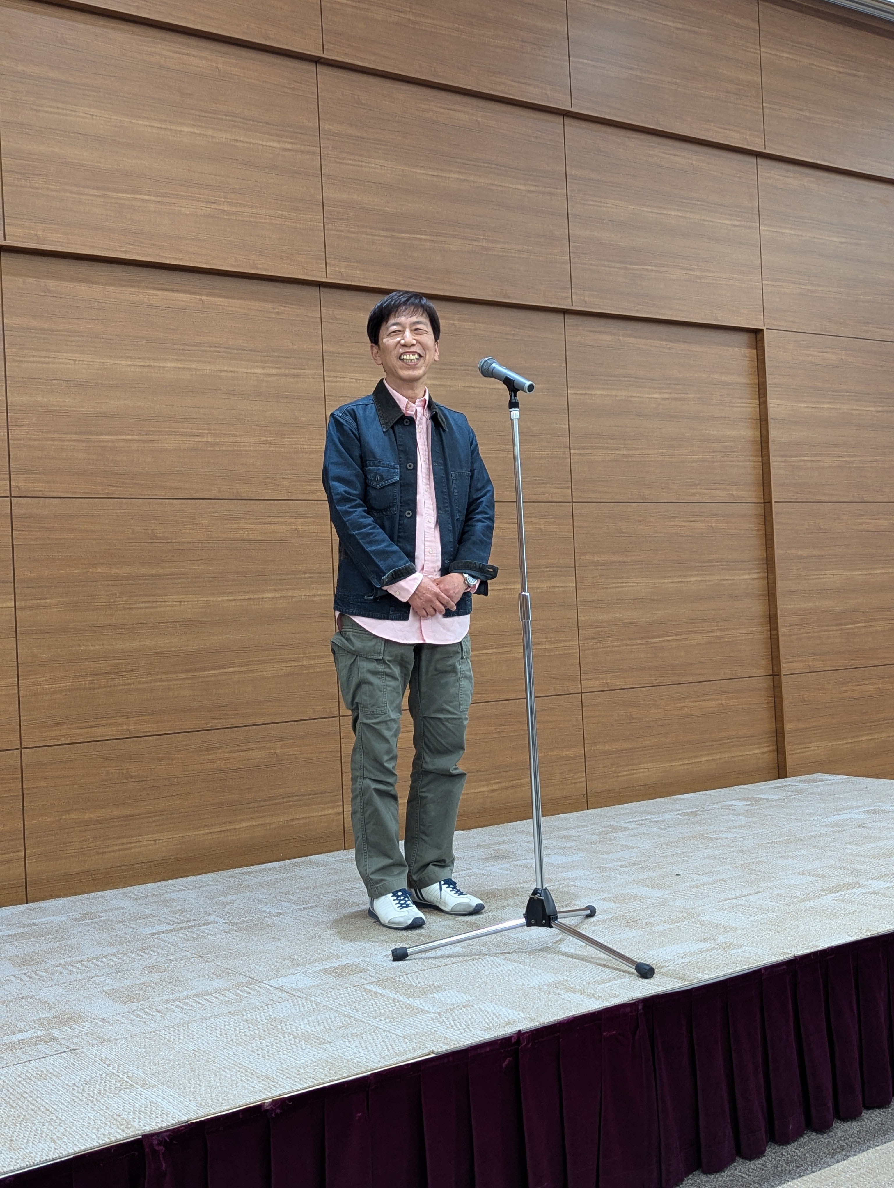 報告会後には懇親会を開催しました。(写真は従業員代表による挨拶の様子)