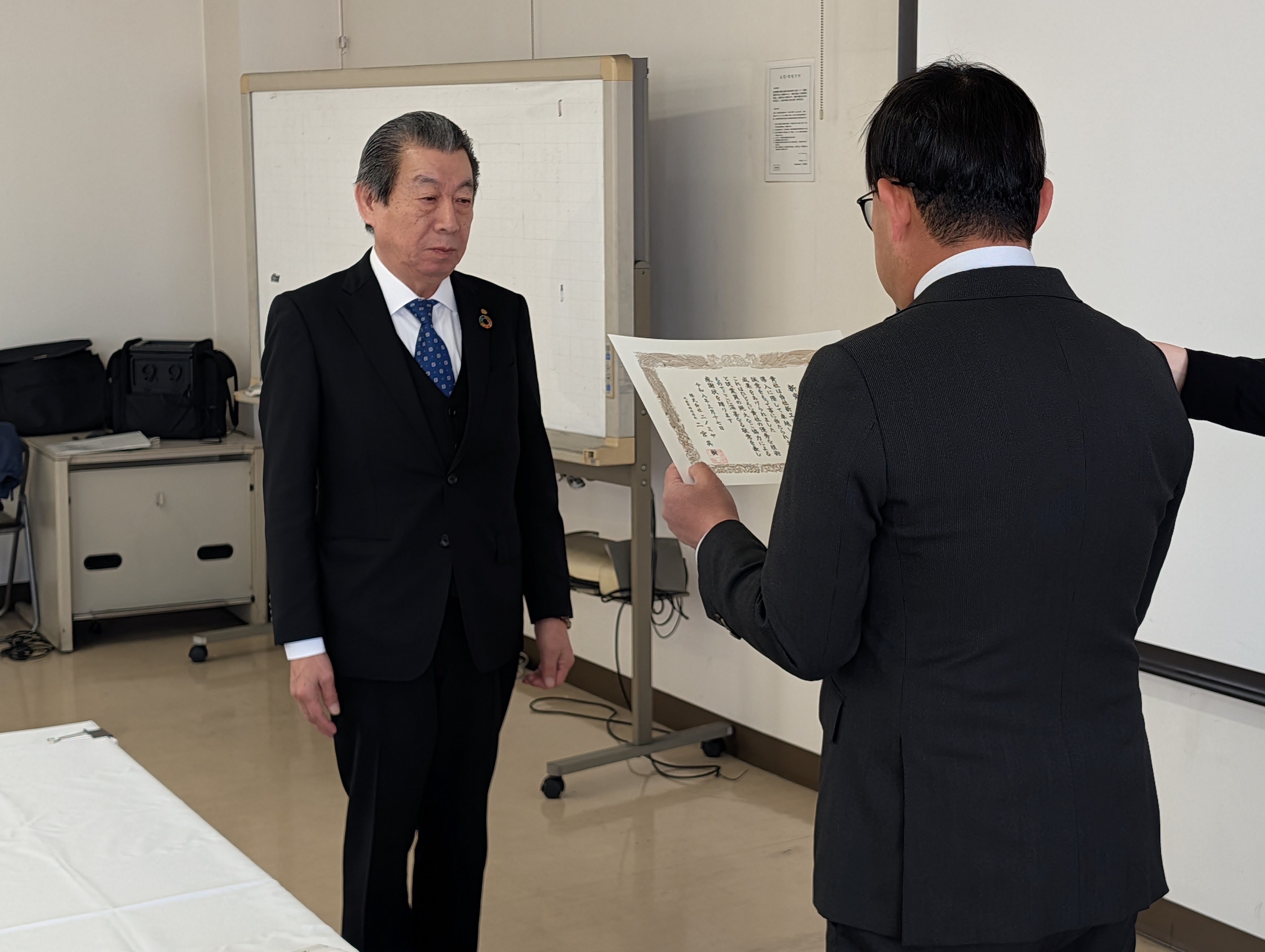 式典後には工事業者様の労をねぎらい、感謝状を贈呈すると共に、ささやかでは